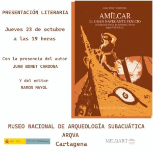 En el Museo Nacional de Arqueología Subacuática (ARQVA), donde la luz entra como si hubiese pasado por un largo filtro de agua y sal, las vitrinas guardan ánforas que aún parecen rezumar el olor de los cargamentos perdidos. No hay mejor lugar para que un libro sobre navegantes fenicios haga escala en este puerto de sombras claras y de reliquias minuciosamente rescatadas. El jueves 23 de octubre, a las 19.00, Juan Bonet Cardona presentará Amílcar, el gran navegante fenicio. La fundación fenicia de Ayboshim / Eivissa. Siglos VIII/VII a. C., acompañado por el editor Ramon Mayol (Melqart Editorial), en un acto respaldado por el Ministerio de Cultura con motivo del Día de las Bibliotecas. .
